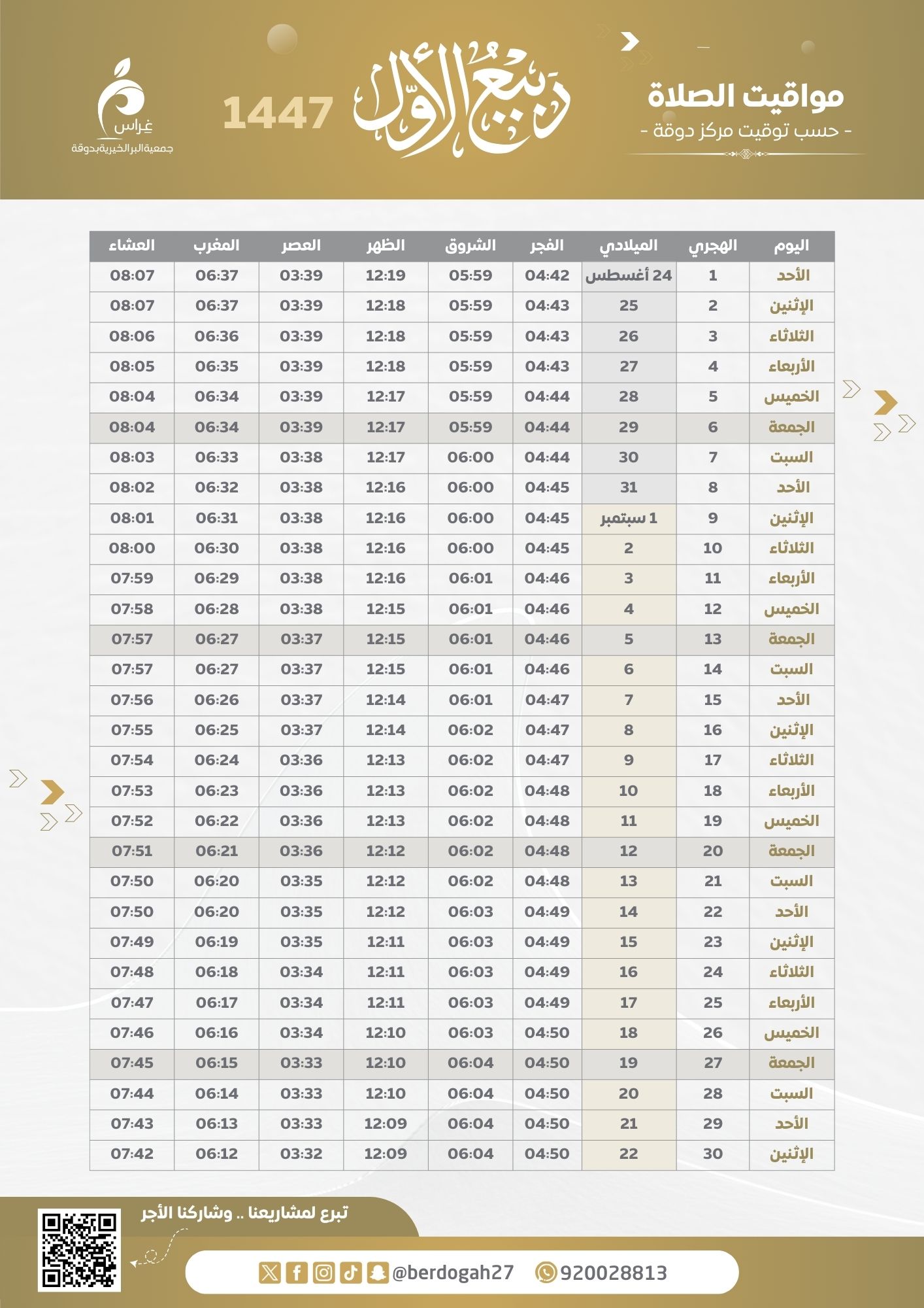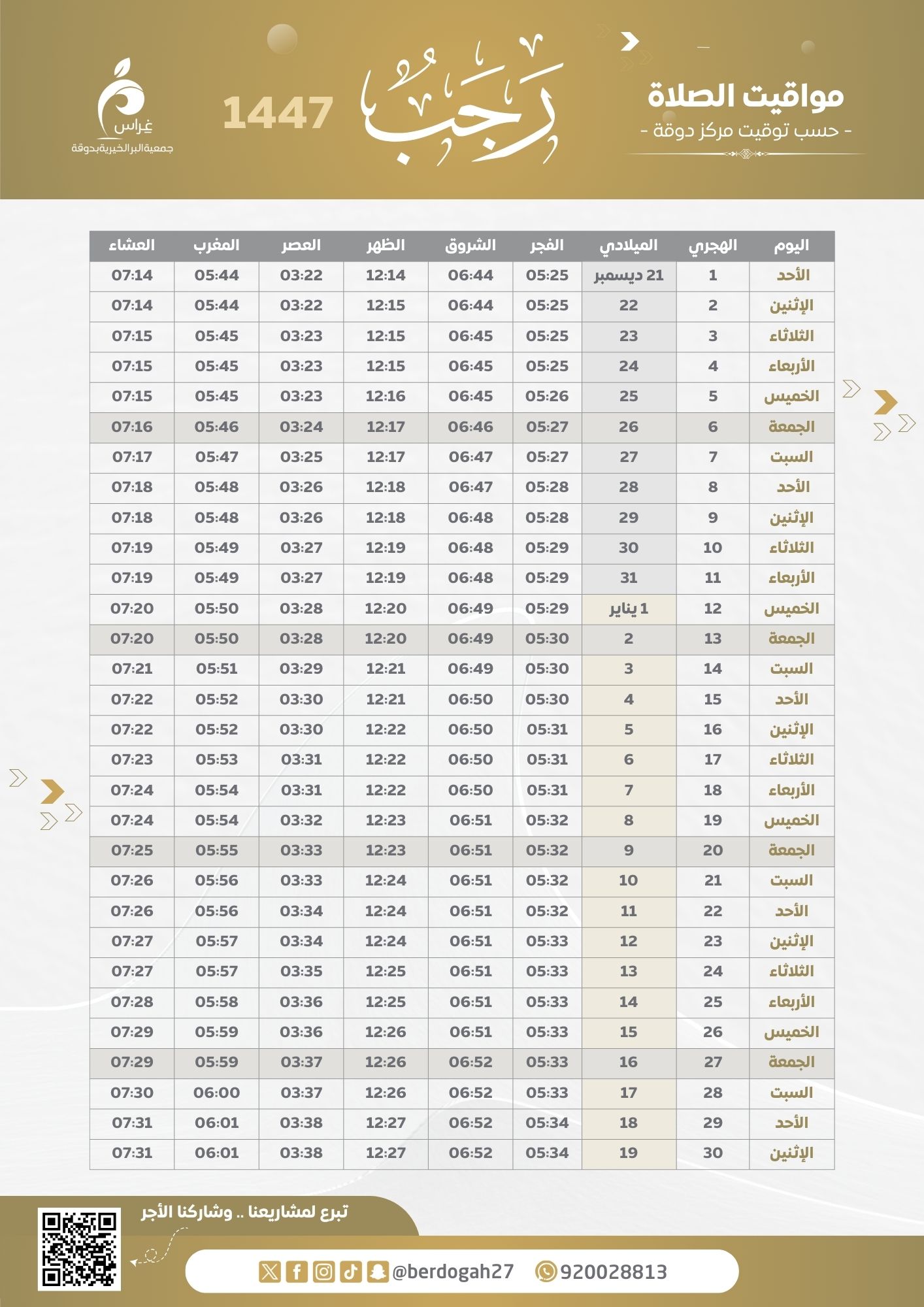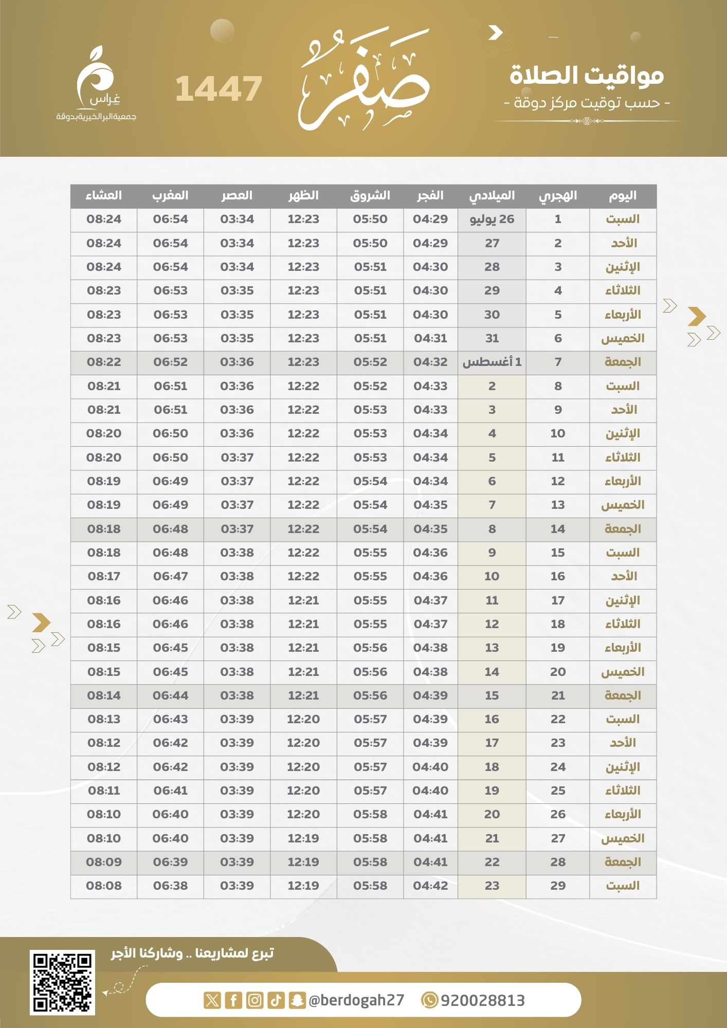 مواقيت الصلاة 1447
