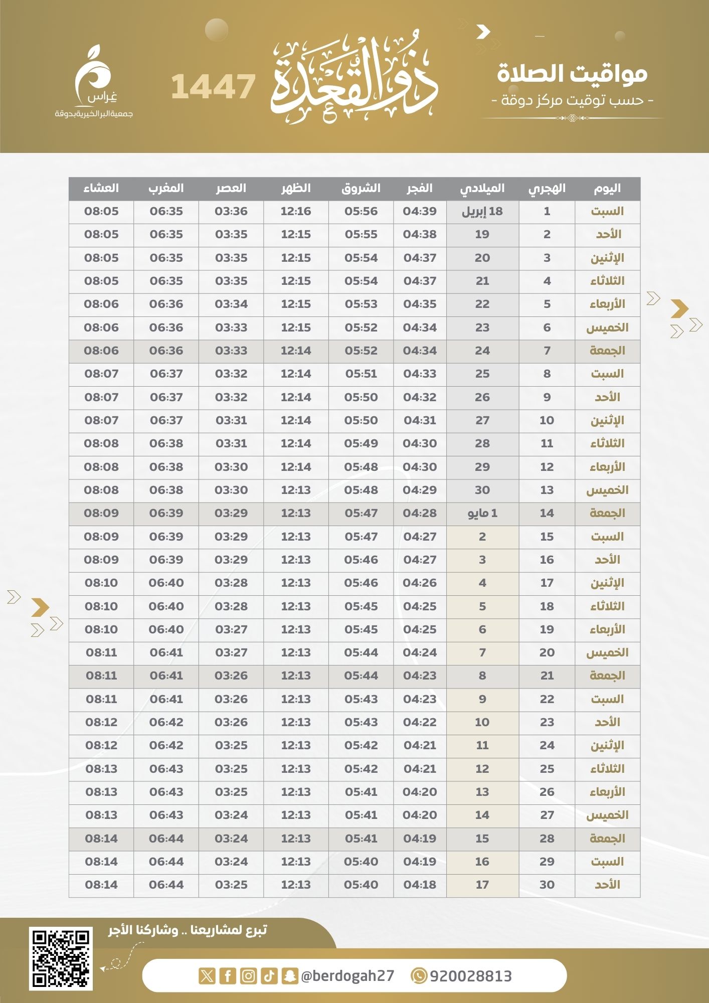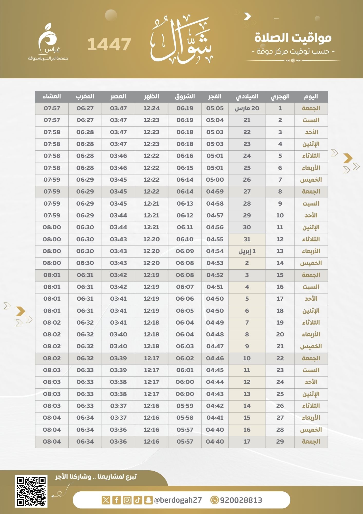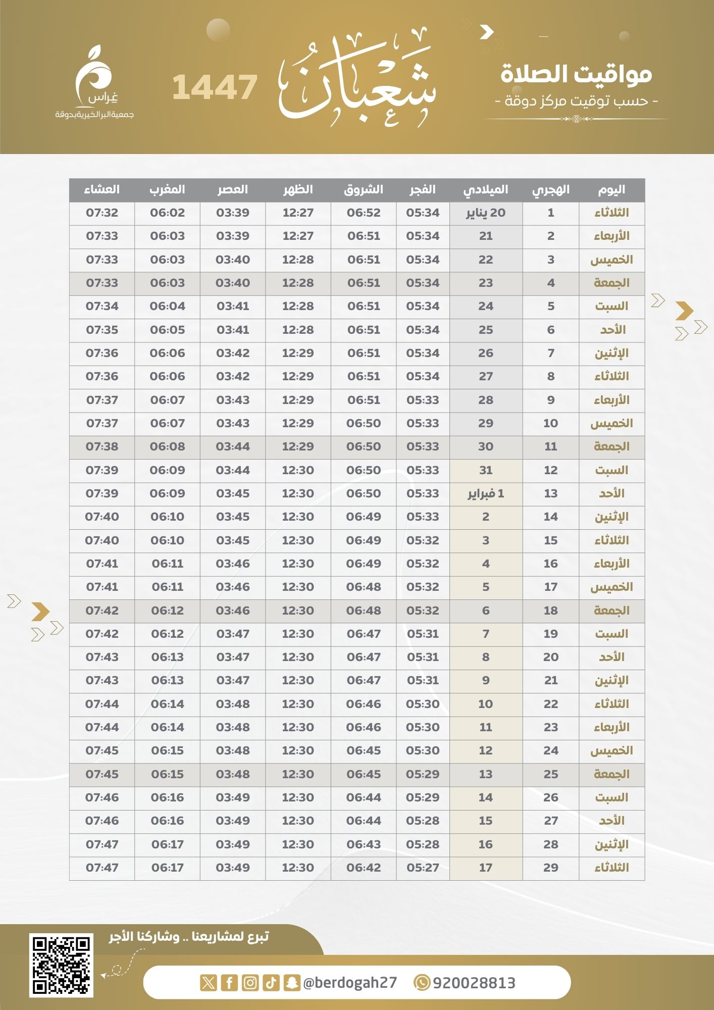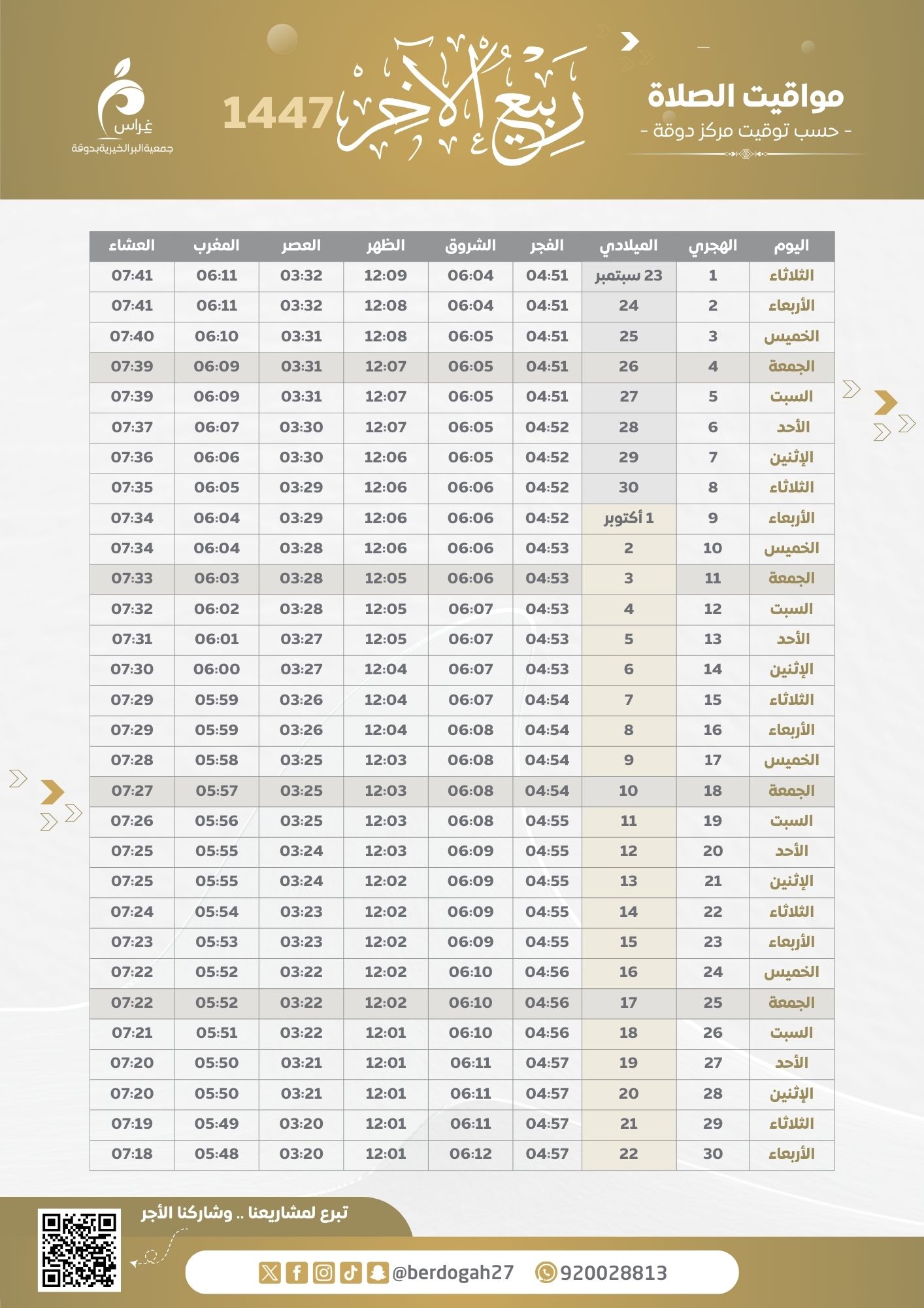 مواقيت الصلاة 1447